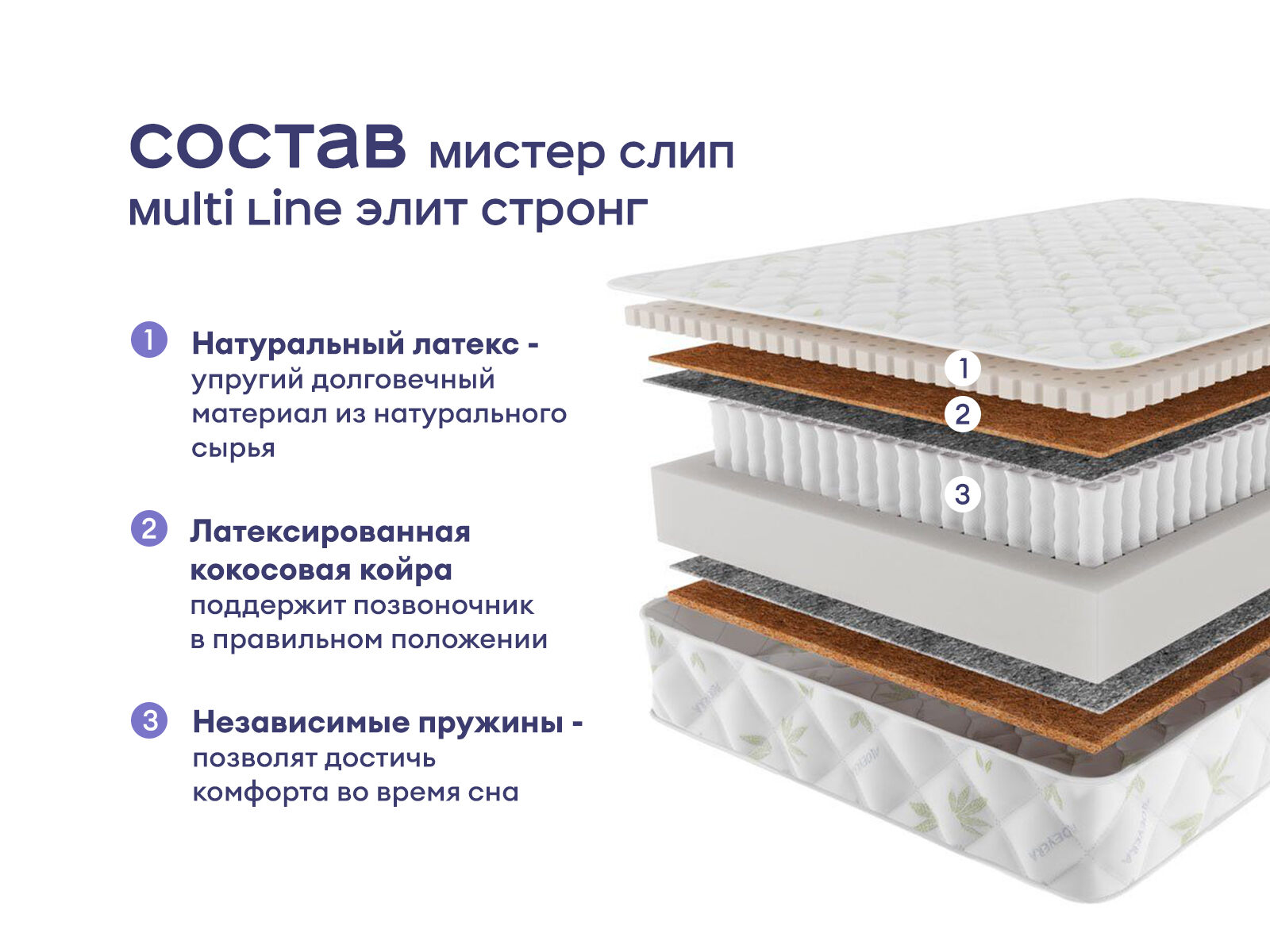 Двусторонний матрас с качественными натуральными наполнителями, включающий слой мягкого латекса, кокосовую койру и усиленный пружинный блок. Эти материалы обеспечивают надёжную ортопедическую поддержку и комфорт, оставаясь практичным выбором для тех, кто ценит долговечность и природные свойства натуральных слоев. Сразу две стороны жёсткости позволяют выбрать уровень поддержки и комфорта.