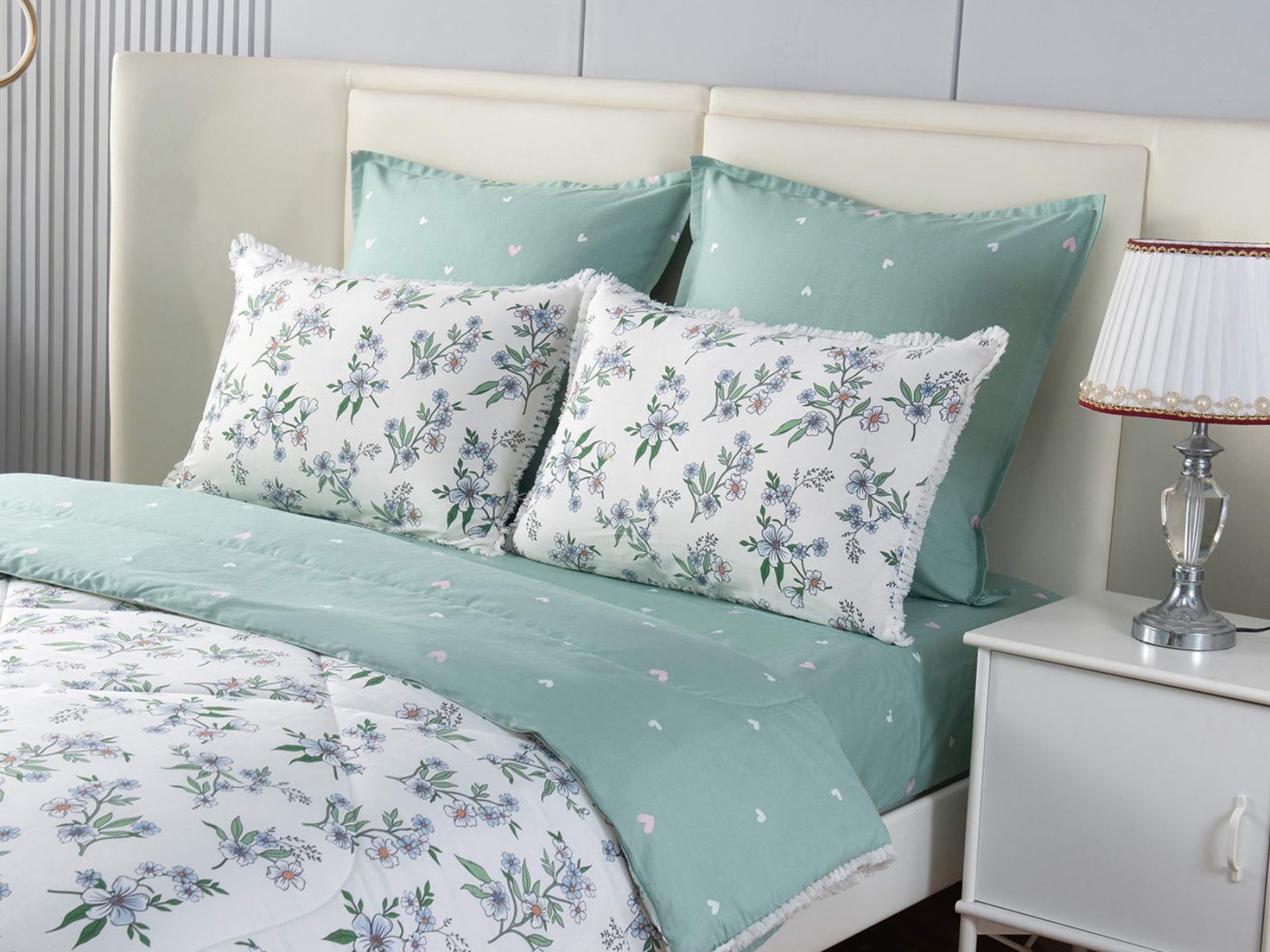 В комплекты комфортеров с одеялом Бернадетт входят наволочки, простыня и легкое всесезонное одеяло. Оцените это современное и очень удобное решение, которое идеально подходит тем, кто не любит возиться с пододеяльниками.