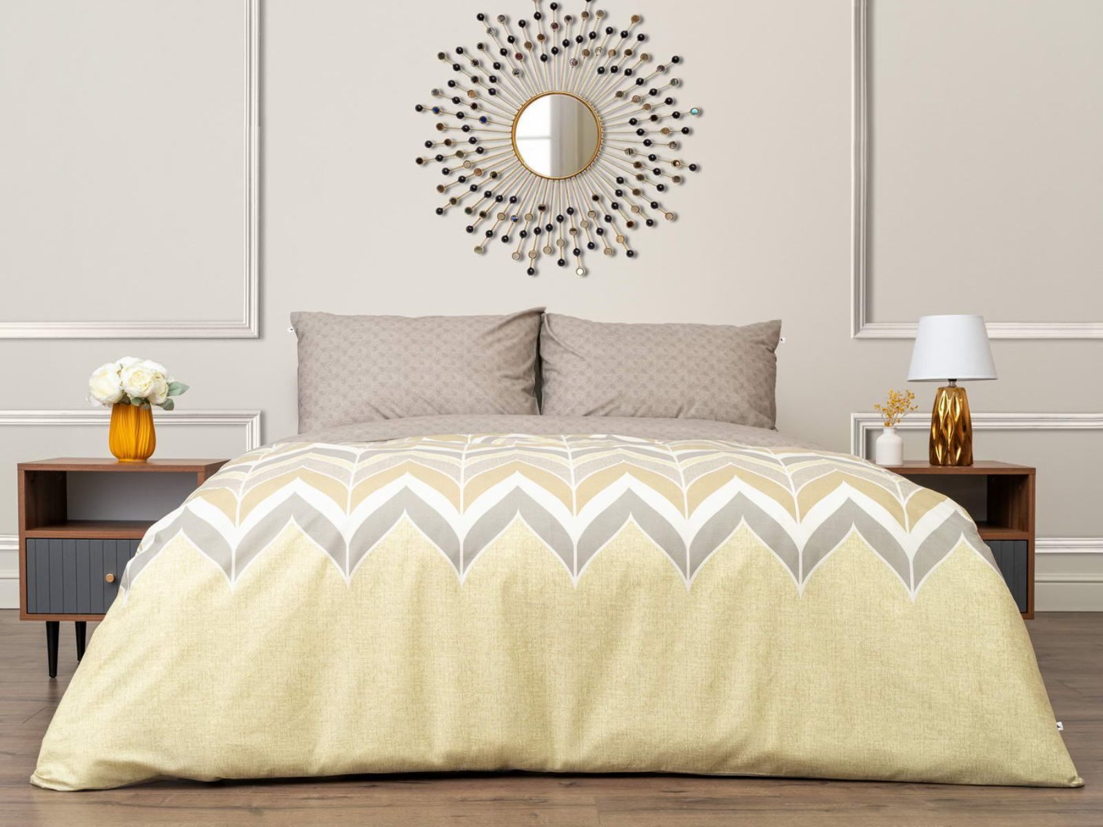 Комплект Мэгги легко стирается в обычной машине в бережном режиме и также легко гладится.