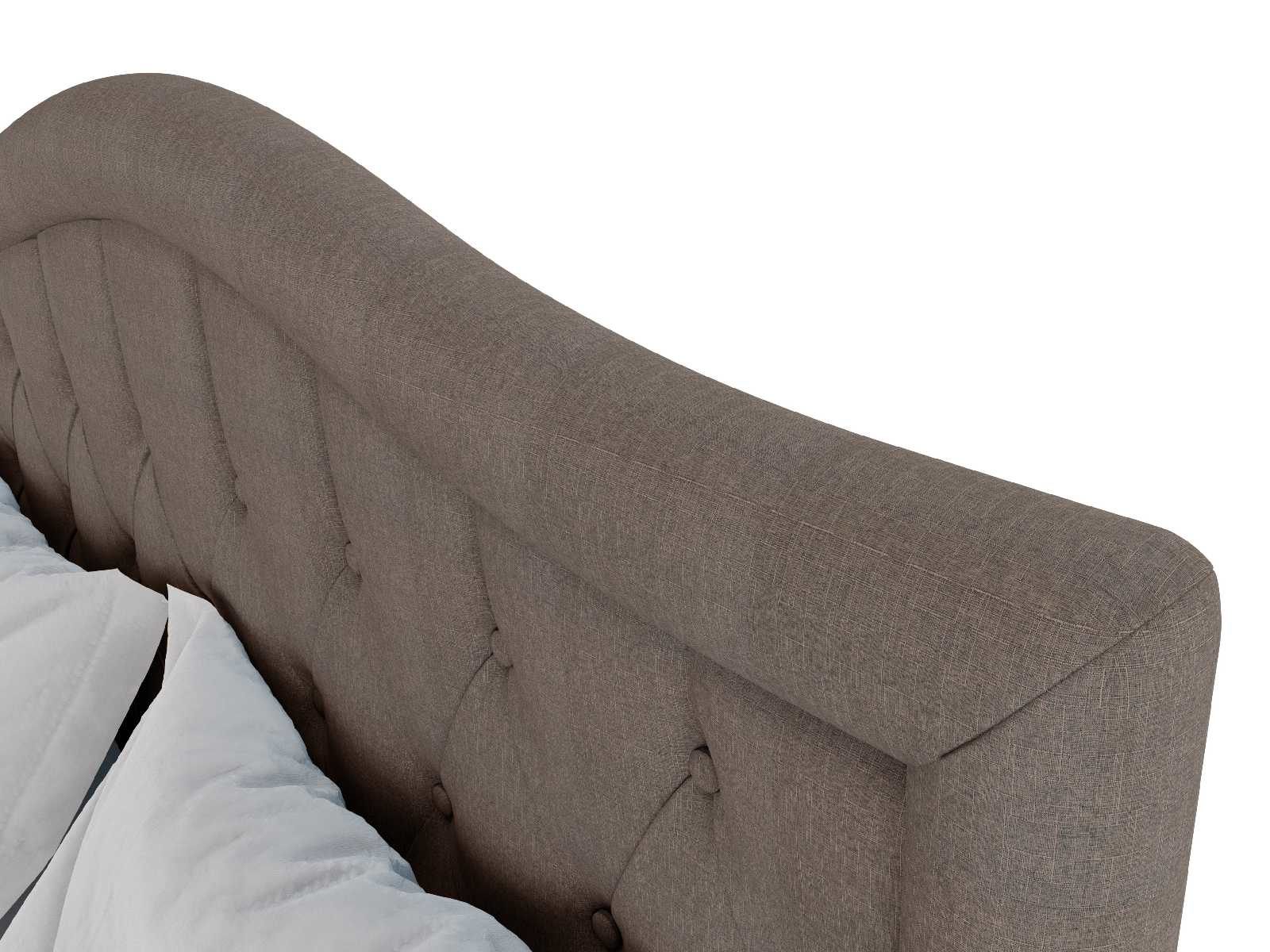 Каркас кровати представляет собой коробчатую конструкцию, выполненную из ДСП 16 мм. Внешние части модели обтягиваются рогожкой на слое мягкого наполнителя. Благодаря такой комбинации изделие обретает мягкость и повышенный комфорт. Материалы, реализуемые в обивке, отличаются стойкостью к износу и легкости чистки от загрязнений. При стандартной комплектации обратная сторона изголовья выполняется из технического материала. Однако по желанию его можно заменить на основную обивку кровати.