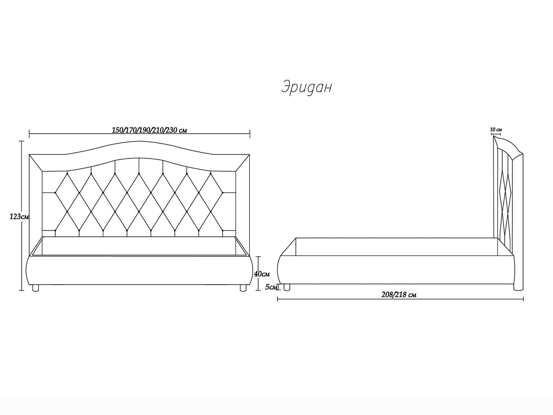 Кровать Эридан отличается высоким изголовьем плавной изогнутой формы. Спинка модели оформлена классической каретной стяжкой и дополнена пуговицами, обтянутыми в тон. Для любителей оригинальных решений производитель предусмотрел возможность замены пуговиц на сияющие стразы. Царги мебели получили плавные скользящие линии, которые делают силуэт обтекаемым. Продуманные формы наделяют кровать высокой функциональностью и позволяют безупречно вписать в любой интерьер.