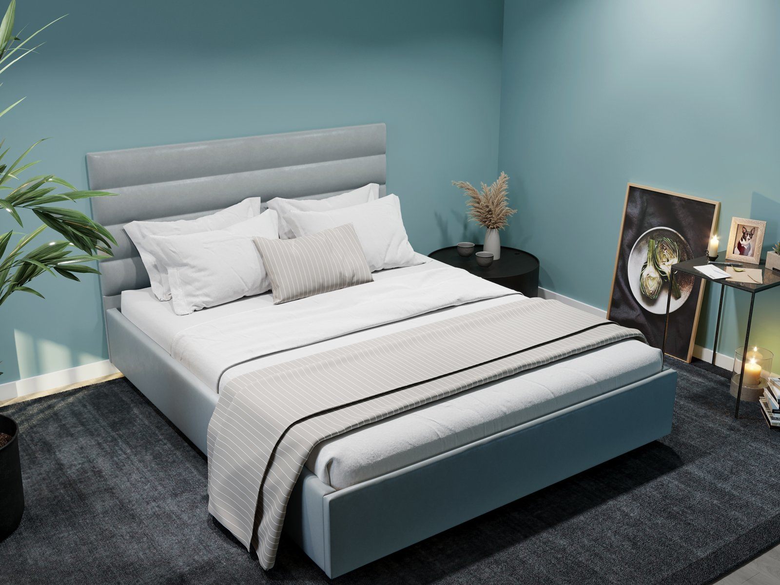Левита оснащена специальным подъёмным механизмом, встроенным в основание. Просторный бокс, который становится доступен с такой системой – отличное место для хранения любых вещей, в том числе одеял и постельного белья. Решение оптимально для экономии пространства.