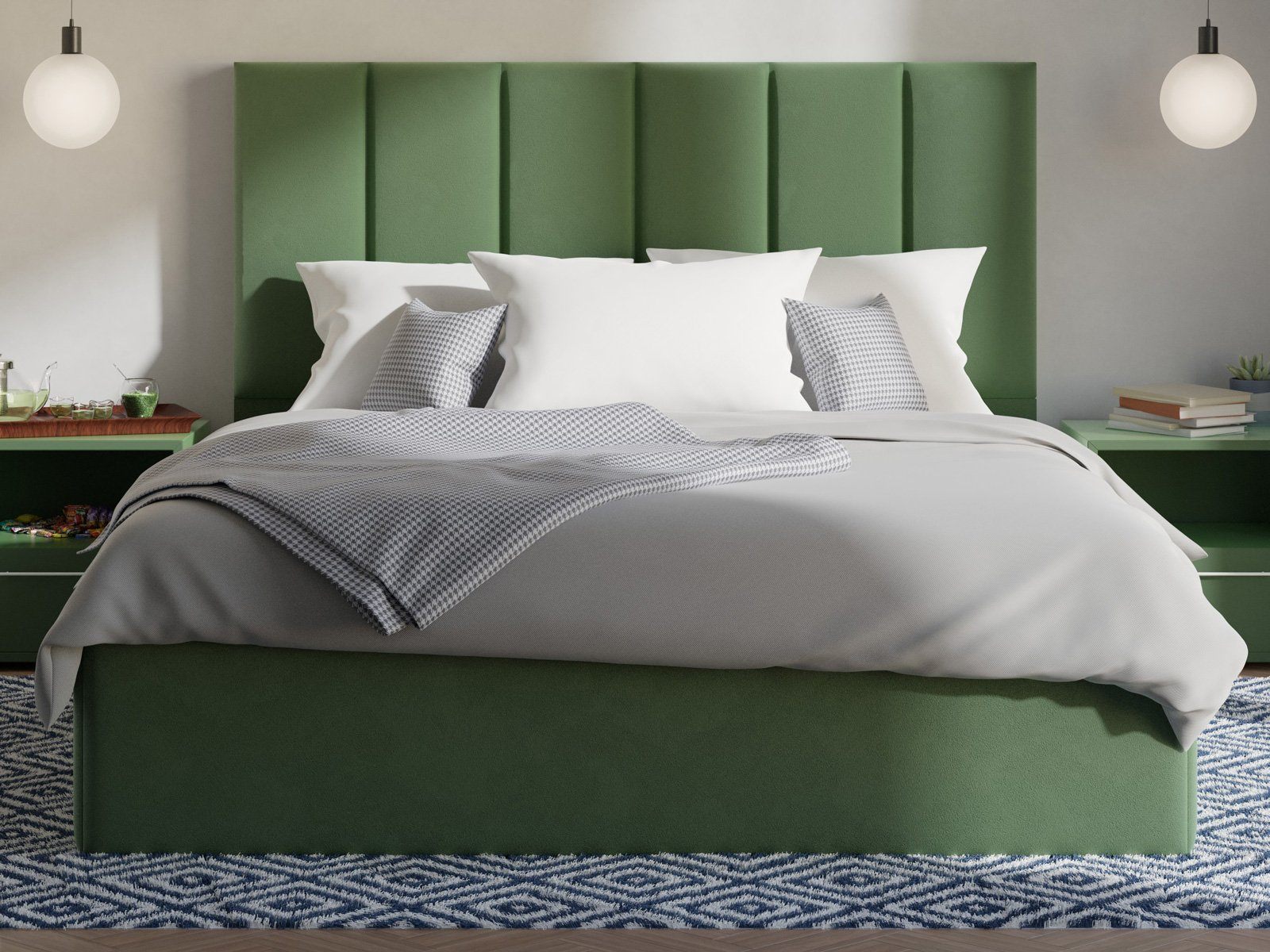 Мягкая кровать с обивкой из велюра.