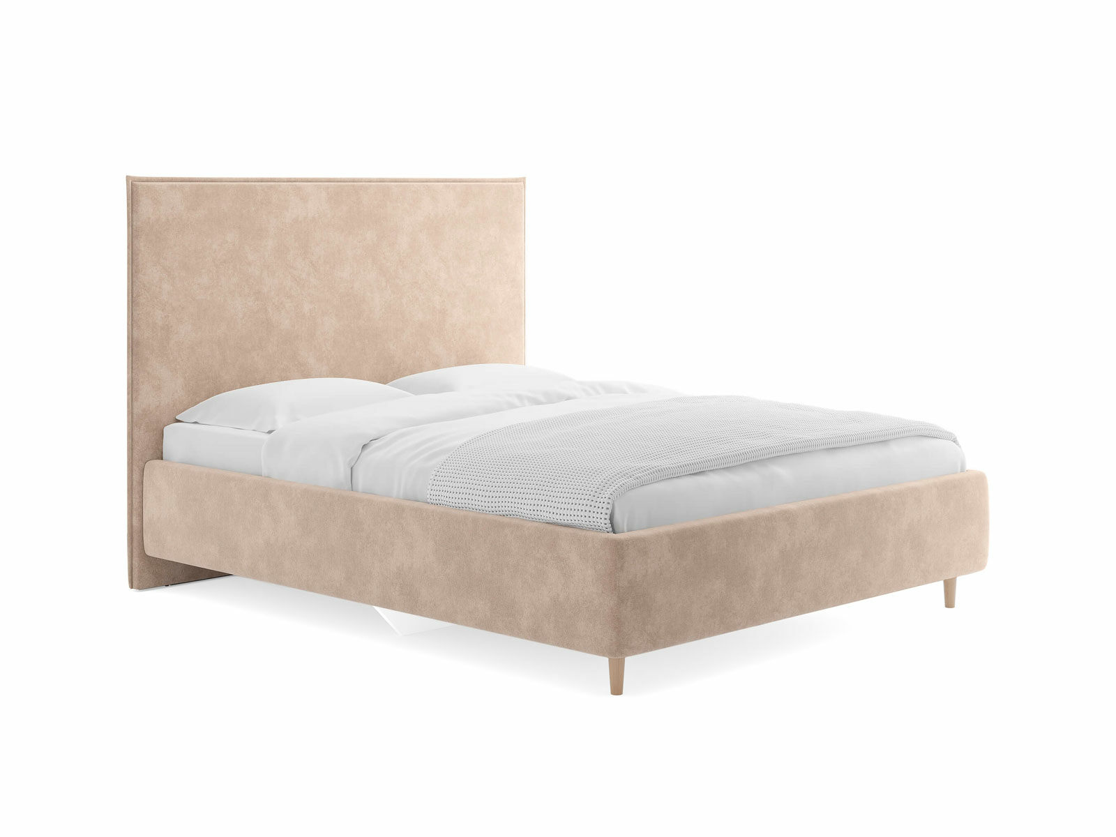Кровать Eveline для современных интерьеров в скандинавском стиле. Выглядит эффектно благодаря мягкому высокому изголовью с декоративным кантом по периметру и опорам из натурального дерева. Модель будет смотреться выигрышно и актуально в интерьере, делая спальню уютнее, настраивая на отдых.