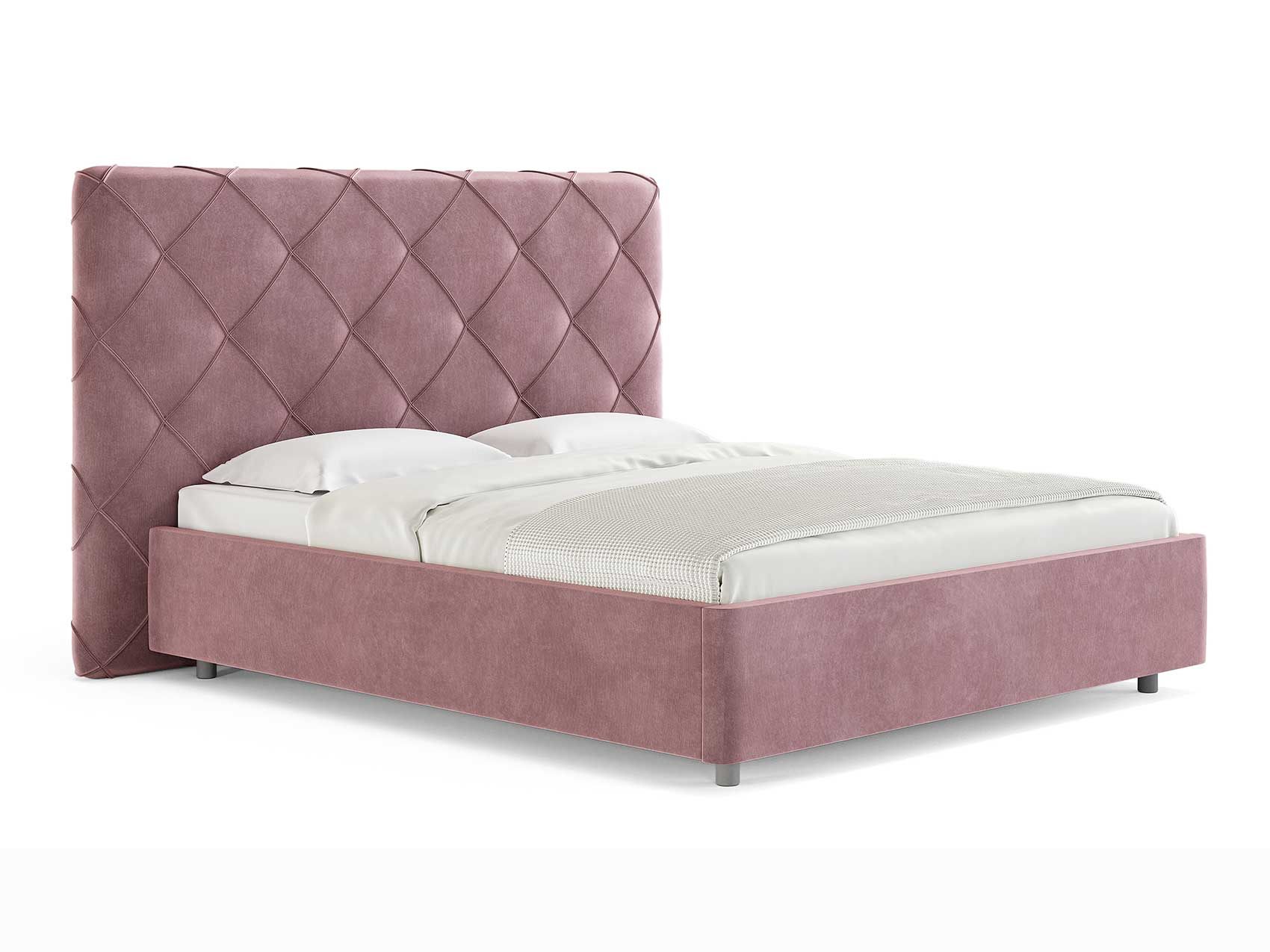 Современная интерьерная кровать. Ножная царга кровати скругленная по углам, что обеспечивает более элегантный внешний вид.