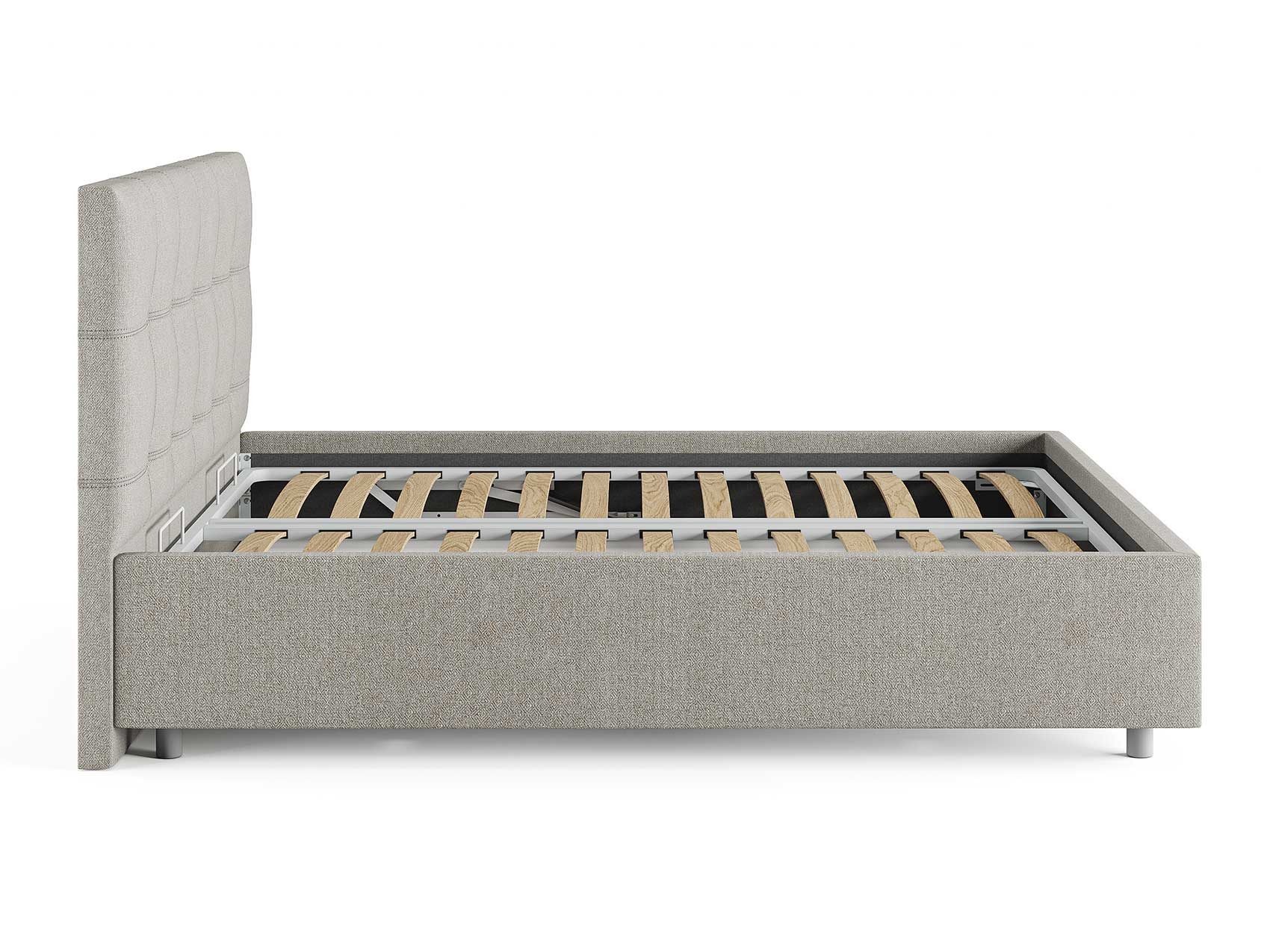 Кровать комплектуется металлическим основанием (без опор), которое имеет 13 рядов встроенных березовых ламелий на каждое спальное место, обеспечивая равномерное распределение нагрузки.