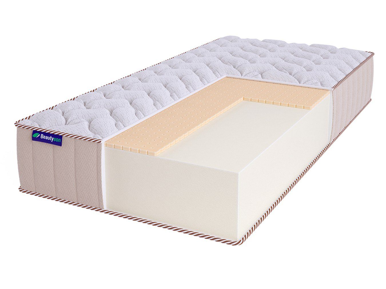 Наполнители – ортопедическая пена AirFoam и натуральный латекс. Пена создаёт правильную поддержку, а латекс отвечает за комфорт и мягкость.