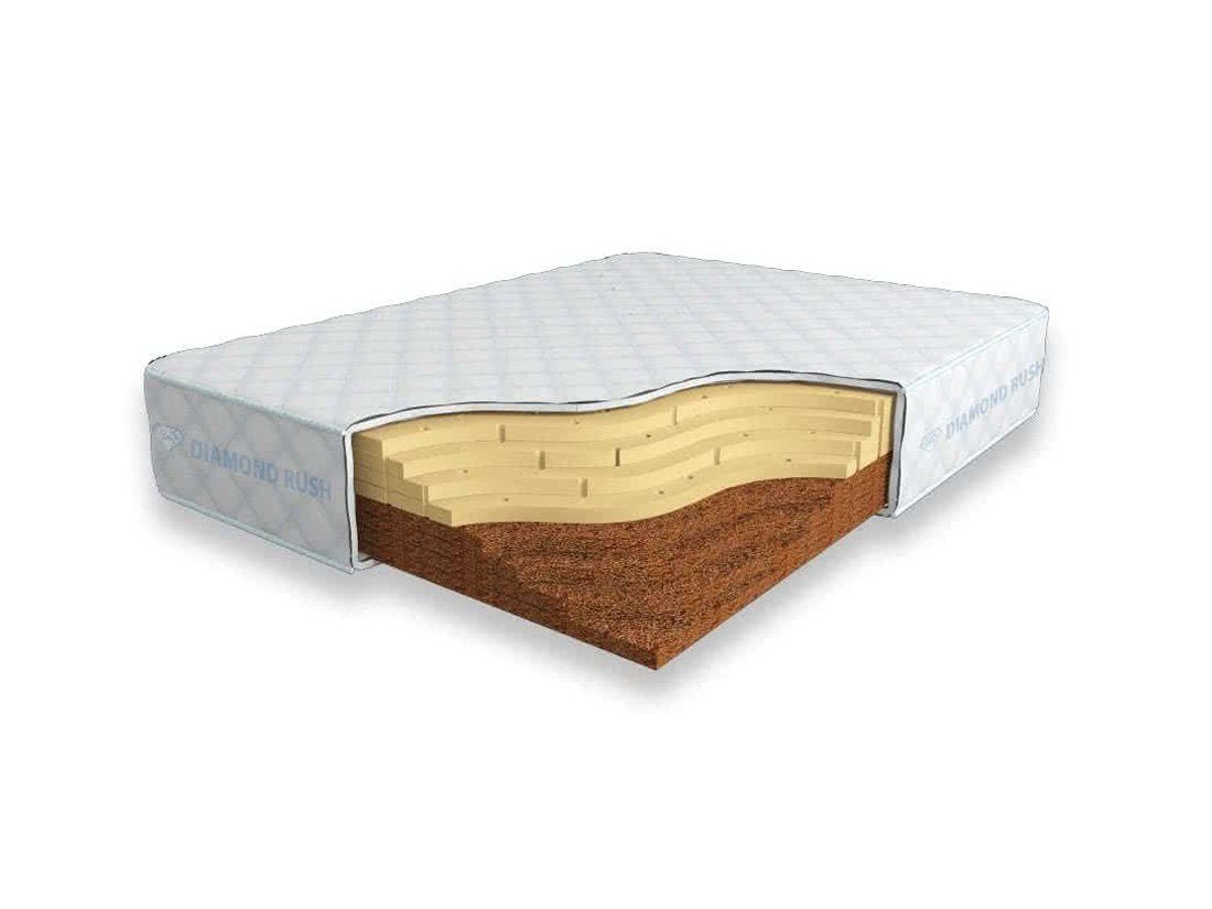 Матрас Diamond Rush Cocos Contrast 24 DR является беспружинным, т.е. не имеет в своей основе пружинного блока. Особенность этой модели в том, что она сочетает в себе сразу мягкий и жесткий матрасы. С одной стороны идут слои латексированной кокосовой койры (3см), с другой - натурального латекса с перфорацией (3см).