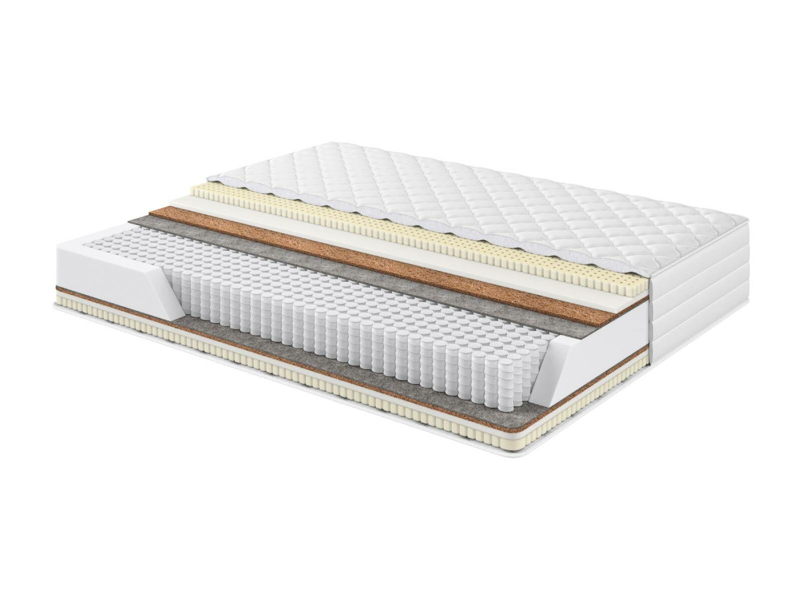 Кокосовая койра латексированная. Экологически чистый, долговечный природный материал, получаемый из межплодника ореха кокосовой пальмы, произрастающей в тропических районах Юго-Восточной Азии. Будучи натуральным материалом, койра, тем не менее, не вызывает аллергических реакций, и наоборот, выросшее под солнцем тропиков, кокосовое волокно впитало в себя огромный запас энергии, которая создает на много лет мощное благотворное биополе. В качестве наполнителя для матрасов кокосовая койра обеспечивает оптимальную упругость и долговечность матраса. Для устранения ломкости и увеличения срока эксплуатации, кокосовое волокно пропитывают латексом. На выходе получается монолитная плита: прочная и долговечная. Латексная пропитка позволяет выдерживать большие нагрузки и препятствует деформации и расслаиванию наполнителя.