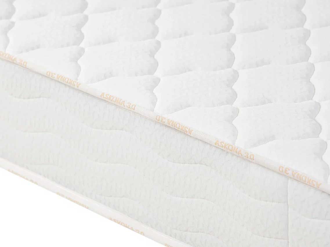 Симметричный матрас Аскона 3.0 Comfort Firm примечателен умеренной средней жёсткостью и равными по характеристикам спальными сторонами. Перевернув модель другой стороной, вам не придётся привыкать к новым параметрам.