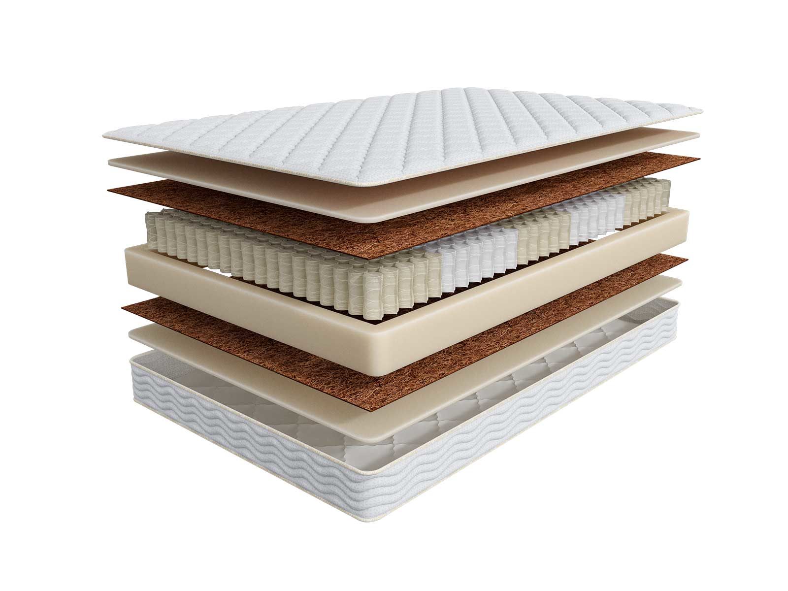Бикокос – жёсткий наполнитель. Он формирует поддерживающие свойства матраса, обеспечивает дополнительную поддержку позвоночника во время сна. Функция материала – это удержание и распределение повышенной нагрузки и обеспечение надежной поддержки тела во время сна.