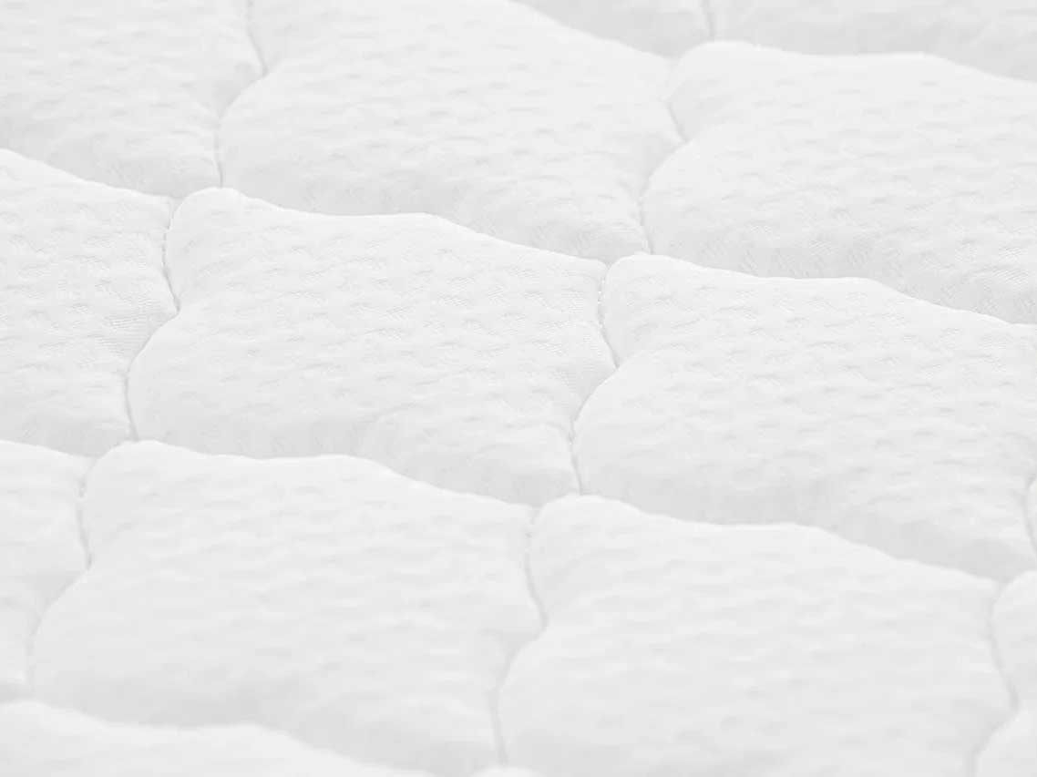В качестве чехла в матрасе реализован мягкий трикотаж. Ткань представляет собой эластичное полотно с петлями. Вот почему трикотаж мягкий и приятный на ощупь. Его часто используют для обтяжки матрасов и мебели, поскольку он отличается высокой износостойкостью.