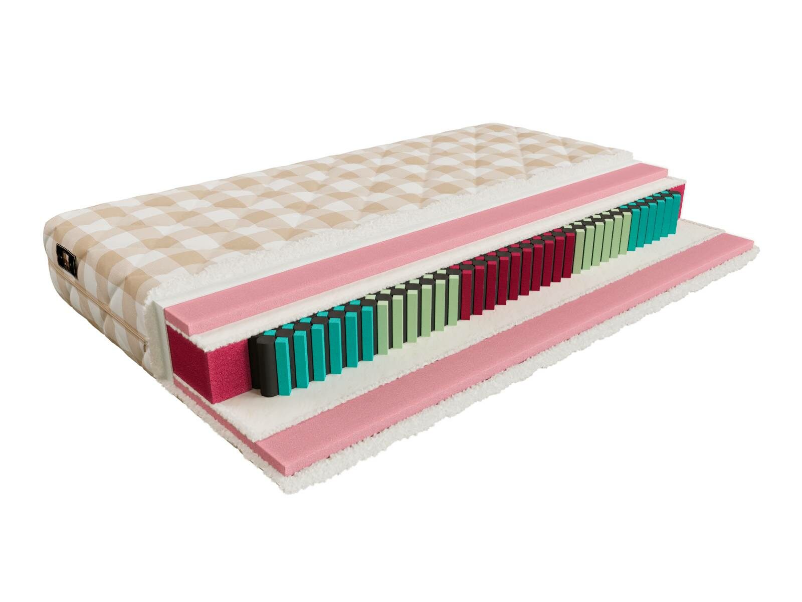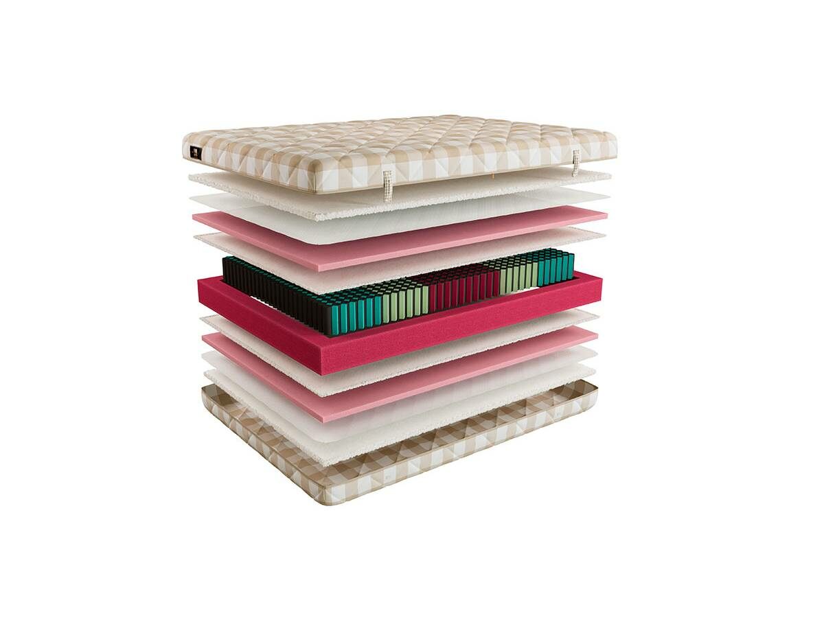 В составе испанская соевая пена Hard Foam с эффектом памяти - З см. Потом защита пружинного блока и сам блок «hypnotic». Для лучшей анатомичности добавили еще пружины из соевой пены Solid Foam, Soya Foam и Neropur.