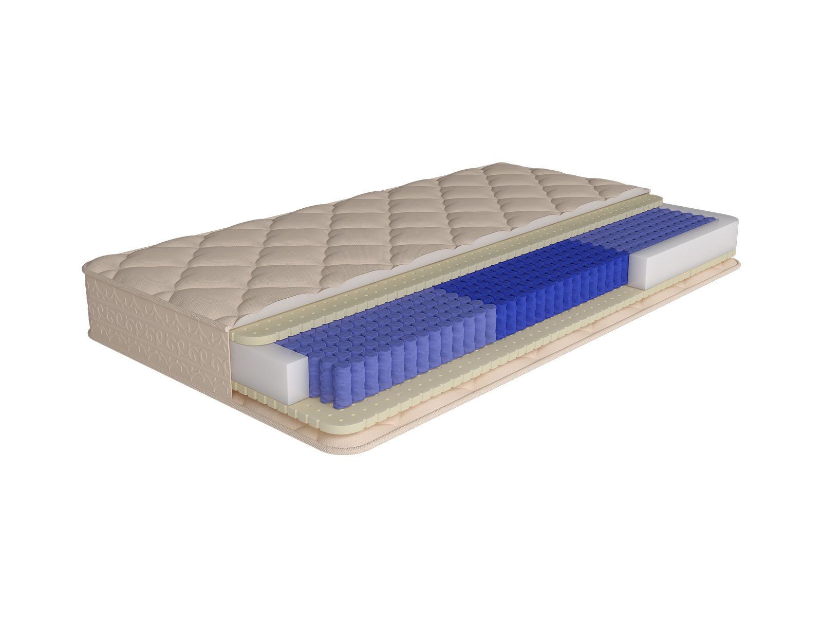 Для зон, поддерживающих ноги и голову, используется пружинный блок средней жесткости, обеспечивающий горизонтальное положение шейного отдела позвоночника и улучшающий кровообращение нижних конечностей. Пружины работают автономно, благодаря этому обеспечивается анатомически точная подстройка пружинного блока под тело спящего человека, исключительная упругость и стойкость к динамическим нагрузкам.
