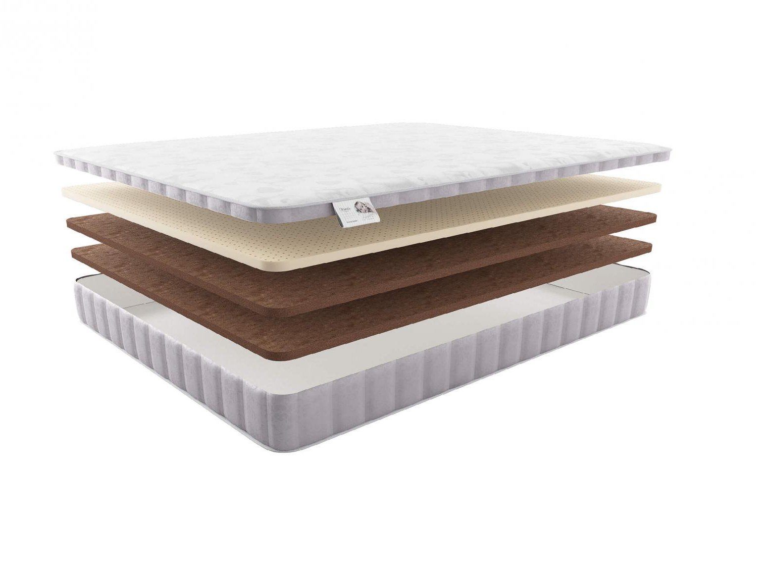 Наполнителями матраса выступают два слоя латексированной койры кокоса и один блок натурального латекса. Все три плиты представлены в 3 см объёме и дают общую высоту изделия – 9 см.