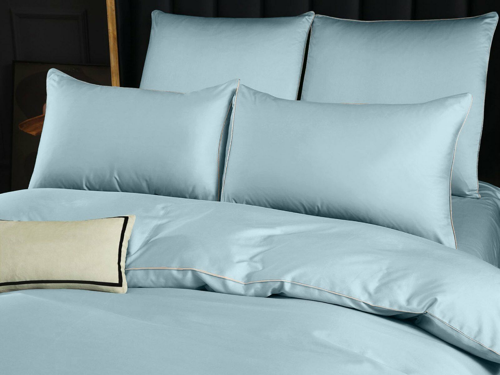 Пододеяльник украшен декоративным кантом по периметру и имеет удобную молнию по всей ширине, что значительно упрощает процесс его замены. Классический, сдержанный цвет кофейного напитка латте выглядит одновременно строго, элегантно и очень уютно.