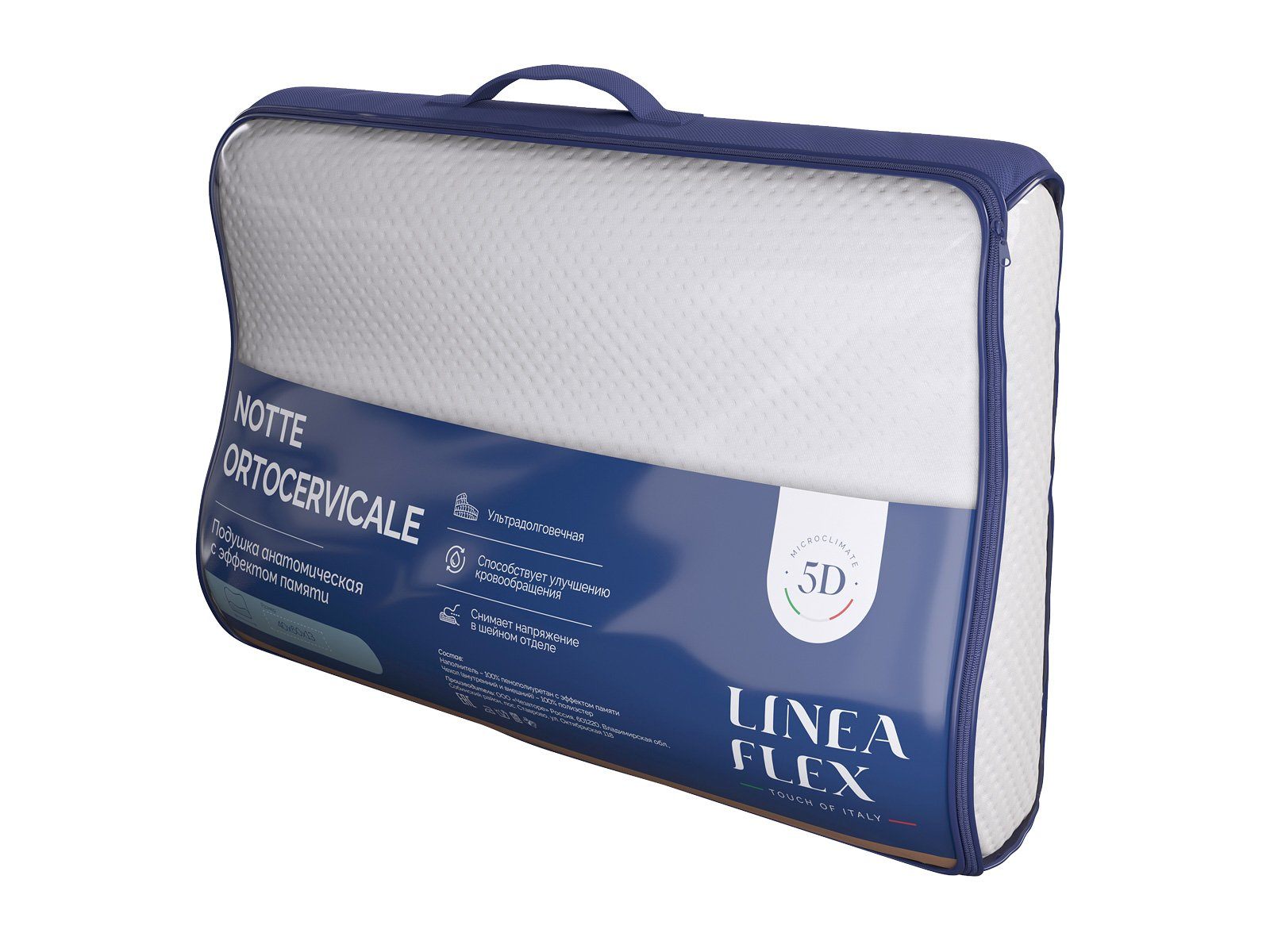 Notte Ortocervicale – анатомическая подушка с эффектом памяти. Имеет форму «волна» и больше подойдет для тех, кто предпочитает спать на спине.