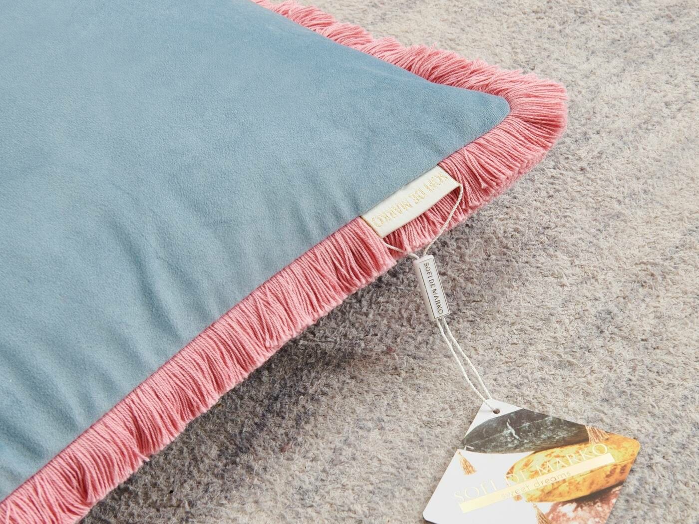 Особенность : с бахромой, потайная молния под цвет вшита в край наволочки.