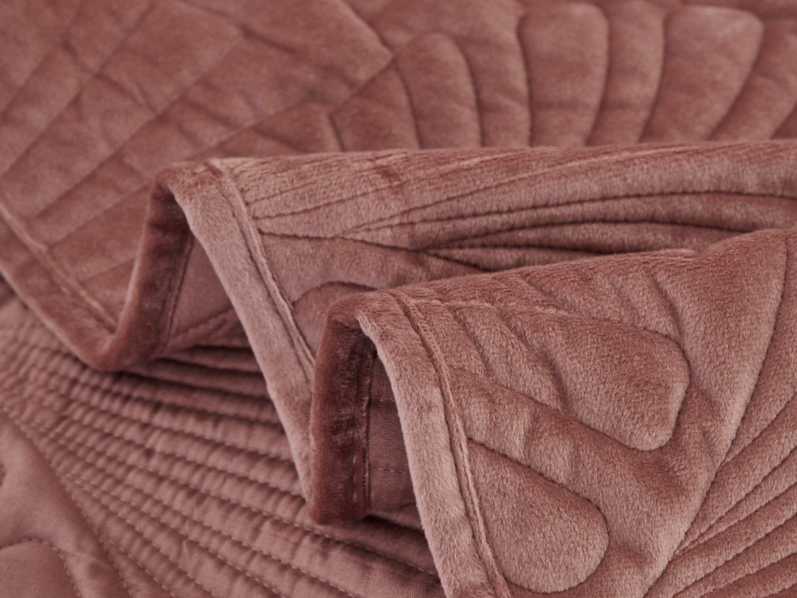 Роскошное велюровое покрывало Ариэль станет изюминкой любого интерьера, ведь оно потрясающе выглядит и приятное на ощупь. Обратите внимание на стежку покрывала – она выполнена в виде ракушек с эффектом 3D. Из-за особого плетения, велюровая ткань покрывала отражает свет и красиво переливается при различном освещении.