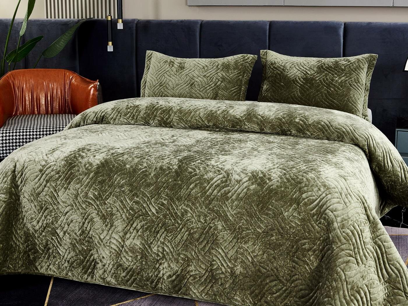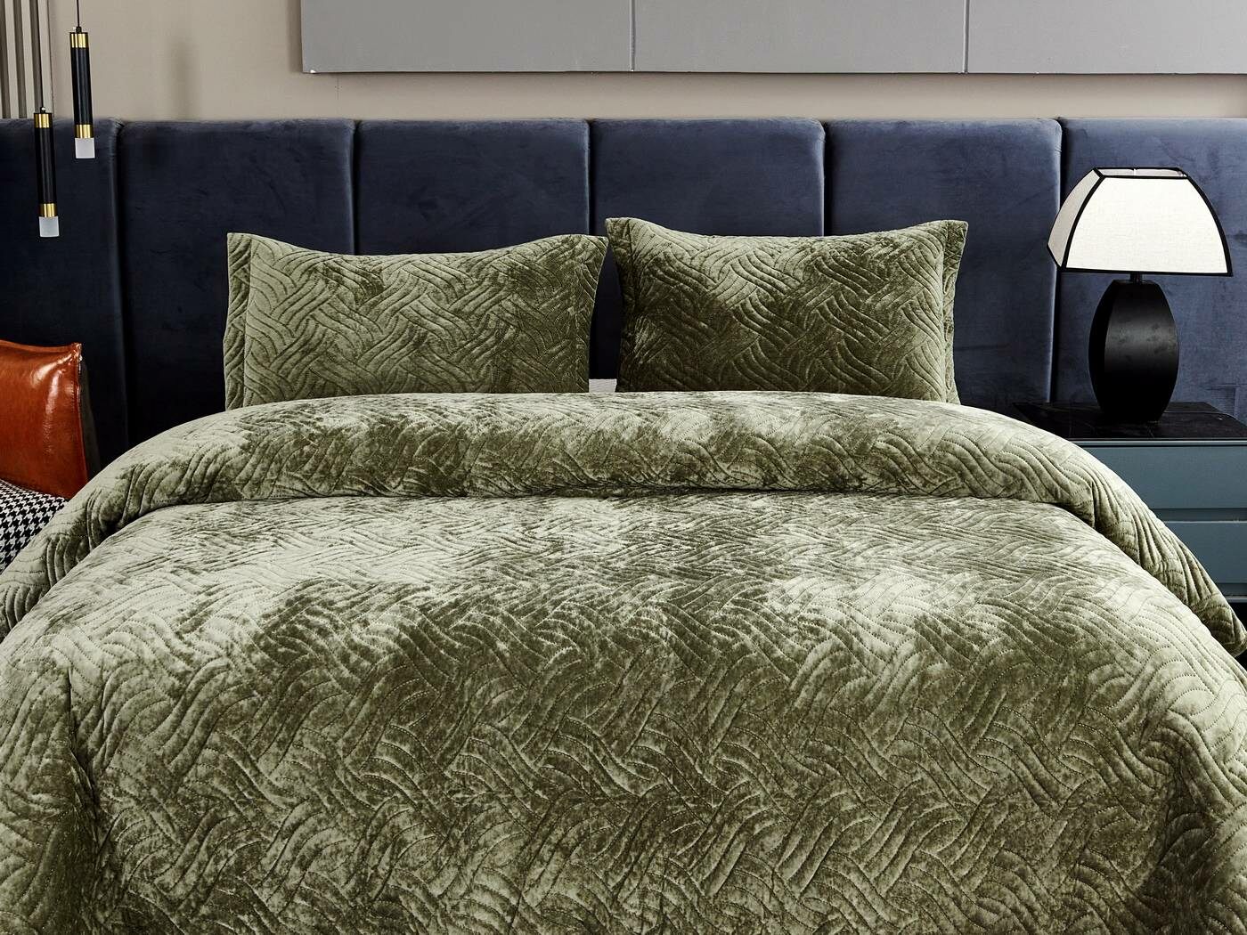 Покрывала «Деварта»: нежность и уют в вашем доме Окунитесь в мир комфорта и изысканности с новой коллекцией мягких бархатных покрывал «Деварта». Эти изделия станут настоящим украшением вашей спальни, добавив ей уюта и элегантности. Покрывала изготовлены из высококачественного бархата, который приятен на ощупь и обладает нежной бархатистой текстурой. Они устойчивы к износу и надолго сохраняют свой привлекательный внешний вид, яркость цвета и мягкость. Благодаря прочной и качественной декоративной стёжке «косичка» наполнитель надёжно зафиксирован внутри изделия. «Деварта» представлена в пяти оттенках: от тёплого бежевого до спокойного серо-голубого. Вы сможете подобрать идеальный вариант для вашего интерьера. Размерный ряд включает два варианта, что позволяет выбрать покрывало, которое идеально подойдёт для вашей кровати или дивана. В комплект входят две наволочки размером 50х70 см. Каждое покрывало аккуратно обшито кантом, а наволочки украшены милыми ушками шириной 5 см. Это придаёт изделиям особый шарм и делает их ещё более привлекательными. Не упустите возможность приобрести эти замечательные покрывала и создать в своём доме атмосферу тепла и уюта. «Деварта» подарит вам не только эстетическое наслаждение, но и незабываемые ощущения при каждом прикосновении.