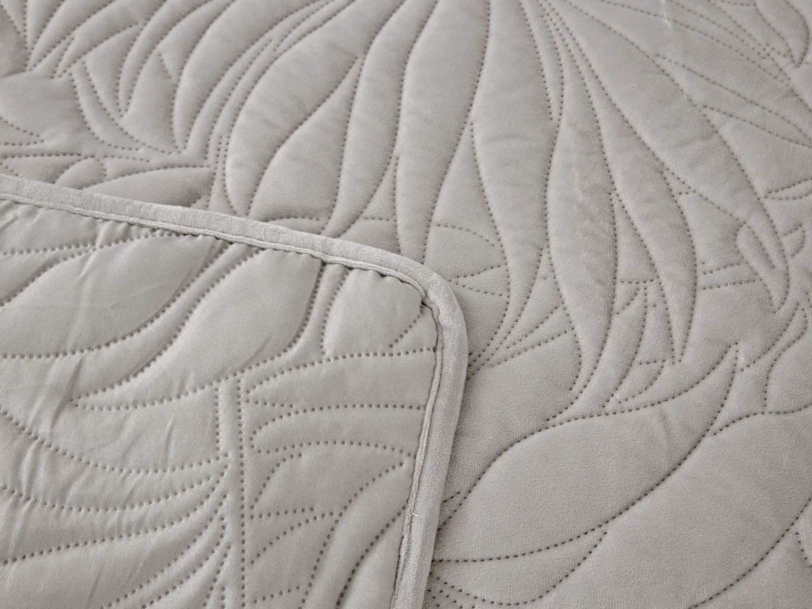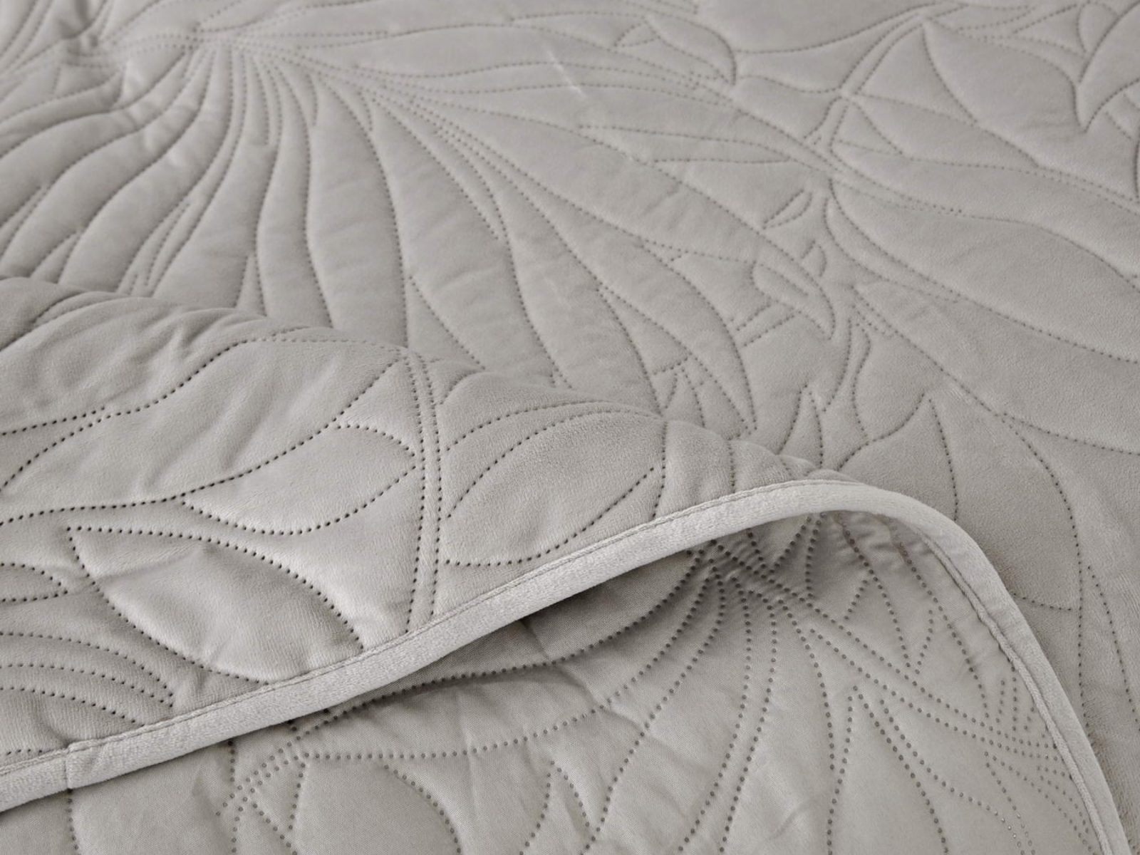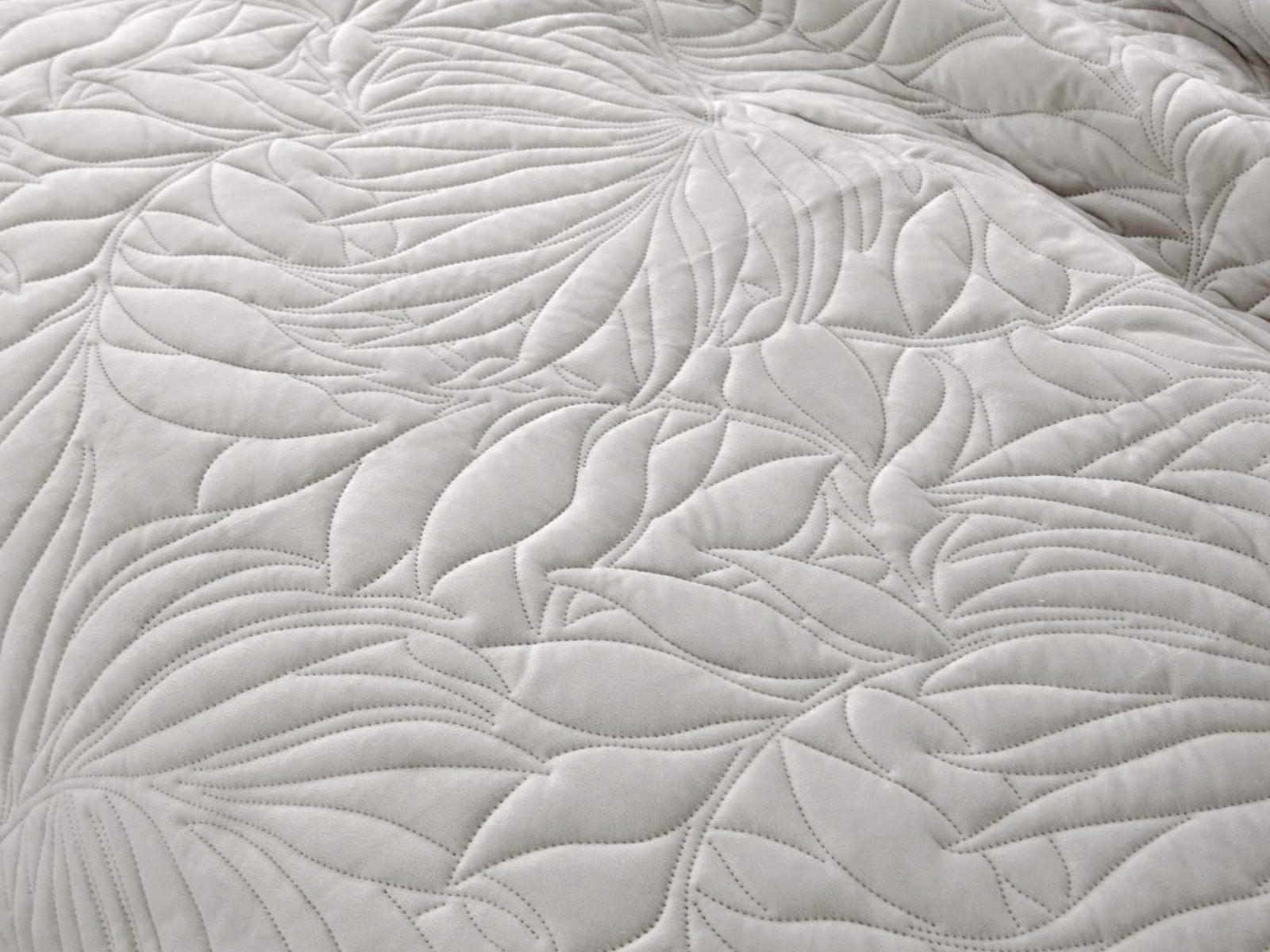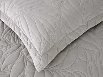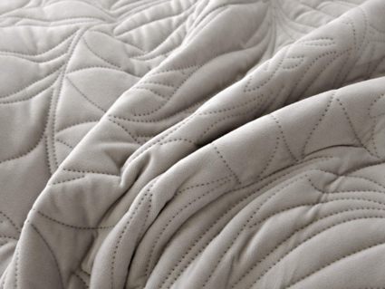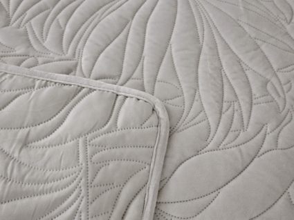 Стёганое покрывало Глория изготовлено из 100% вискозы, что делает его невероятно мягким и комфортным. Рисунок напоминает листья лавра. Такой орнамент подойдет большинству современных интерьеров.