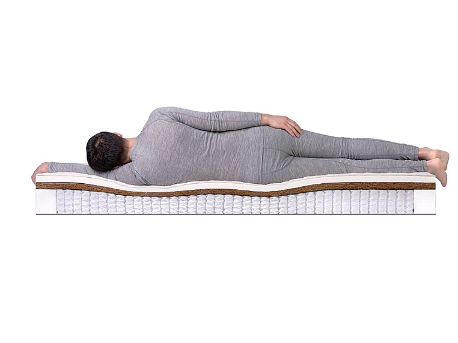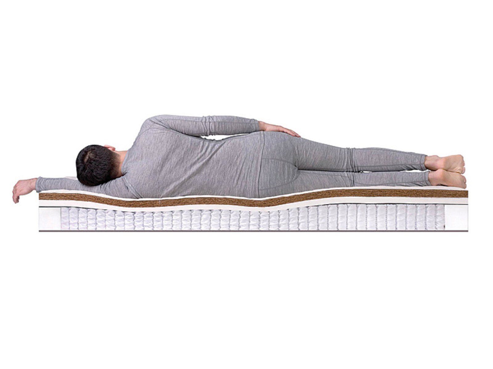 Матрас Prime Mix S1000 достаточно высокий (26 см) и выдерживает большие нагрузки (до 140 кг на спальное место). Модель сконструирована на пружинном модуле, в котором установлено 530 не соединенных между собой пружин, позволяющих равномерно распределять нагрузку по поверхности. В качестве наполнения используется по слою латексированной кокосовой койры и натурального латекса с обеих сторон, причем с одной стороны верхним слоем является койра, что придает ей жесткость выше средней, а с другой сверху располагается латекс - эта сторона имеет среднюю жесткость. Матрас Prime Mix S1000 оснащен чехлом из хлопкового жаккарда, простеганного на антиаллергенном холконе 250 гр./м2, в который можно бесплатно вшить смотровую молнию.