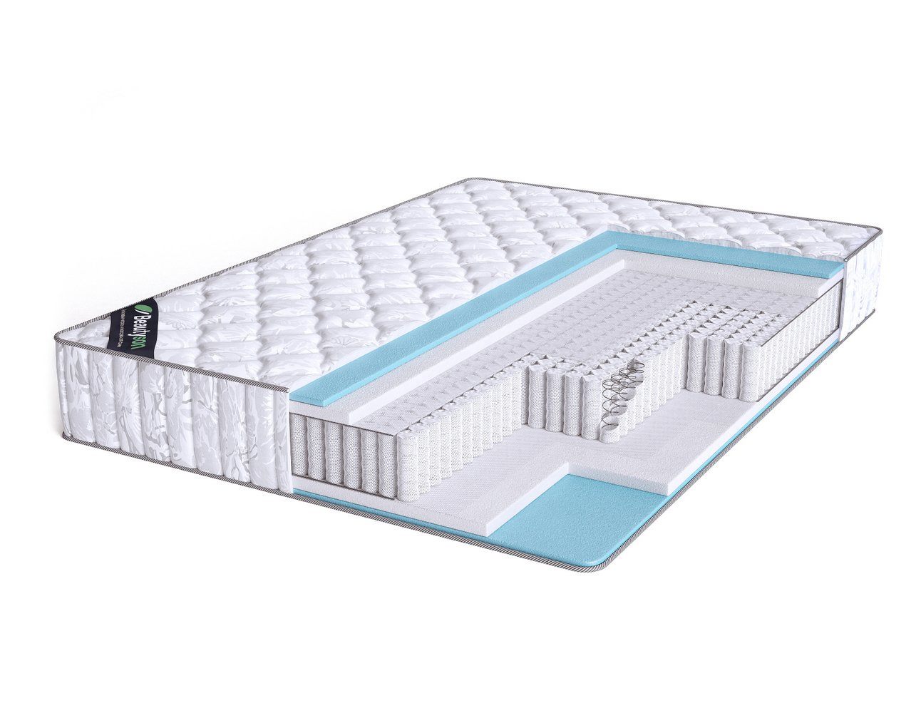 Матрас Promo 7 S1200 изготовлен по уникальной бесклеевой технологии производства, как и все матрасы Beautyson. Для крепления слоев и пружинного блока используется технология механической пристрелки, позволяющая избежать применения клея при производстве, и сделать матрас безопасным и экологичным.