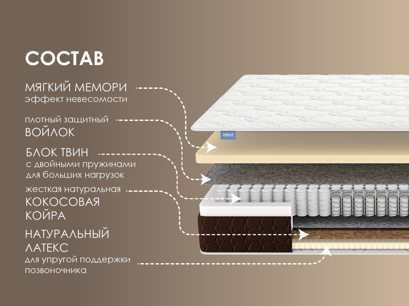 Димакс Твин Медиум Мемо – универсальный матрас, который подойдёт людям с разными предпочтениями и станет настоящей находкой для пар с разницей в весе. Сердцевина матраса – усиленный блок пружин «пружина в пружине», выдерживающий нагрузку до 170 кг на спальное место.