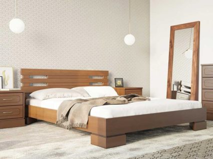 Кровать Варна 1 из массива бука изготавливается с изголовьем в стиле модерн.